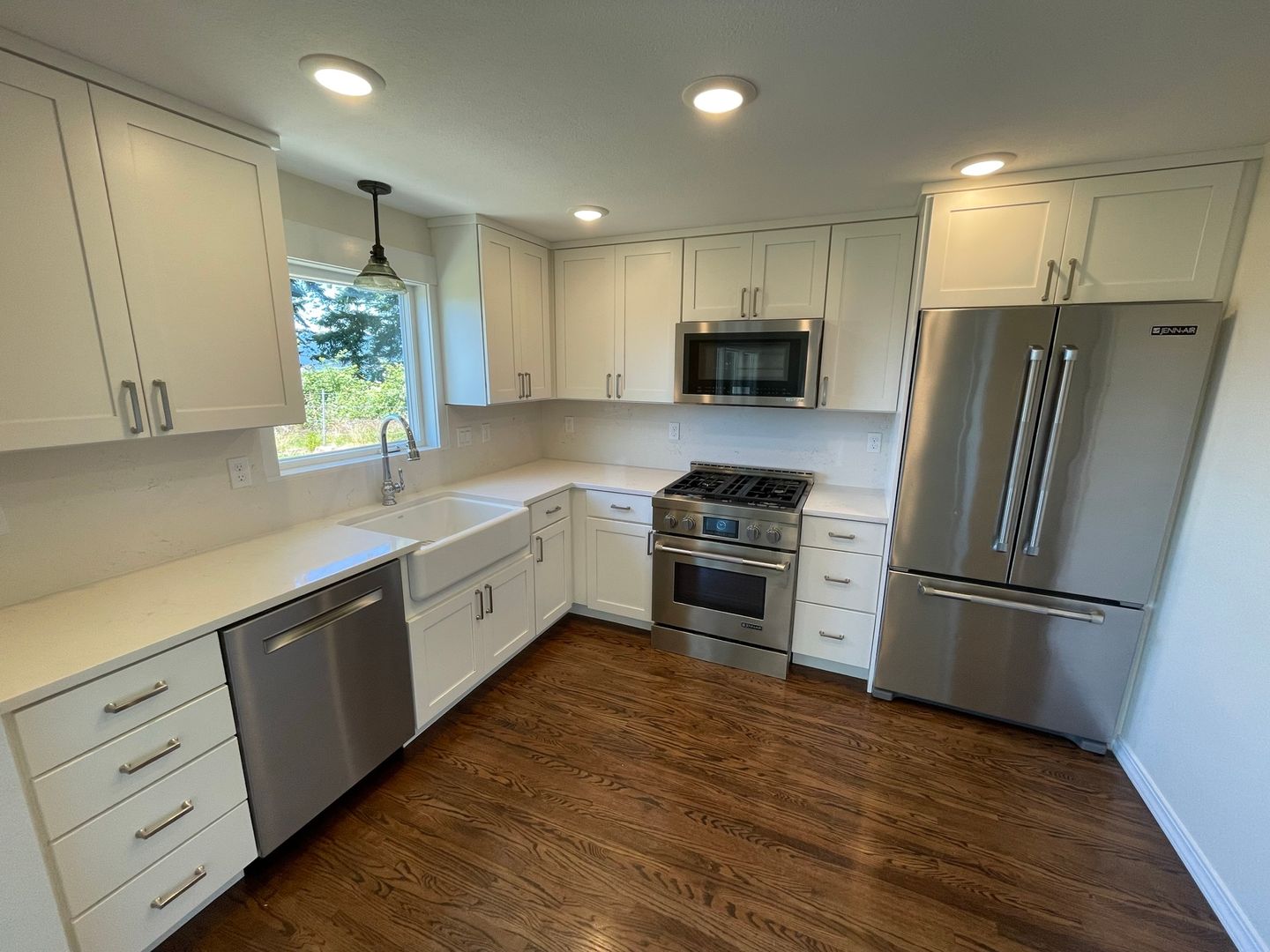 Features include: Kitchen w/ stainless, Jennair appliances, living room w/ gas stove, & sitting room or den. 2 car detached garage, level yard, & deck for enjoying the view. Outside plumb for gas barbecue. Includes all appliances. No smoking/pets.