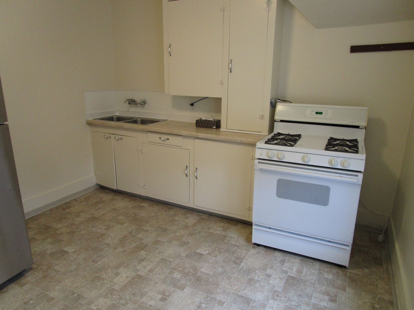 Features include: 1-bedroom, 1-bath second floor unit, with separate entrance. Kitchen includes gas range/stove and refrigerator. Recently remodeled bathroom. Large unfenced yard, and one-car unattached garage. No pets allowed.