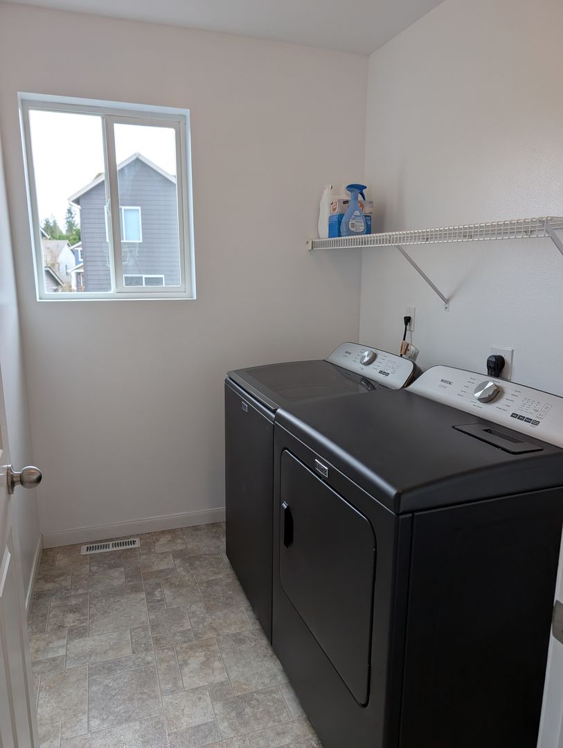 Features include: Three-bedroom, 2.5-bathroom home, with recently new interior paint. Downstairs features open floor plan kitchen, dining and living room area. Natural gas fireplace in living room, gas stove/oven in kitchen. Pantry off the kitchen, and access to 2-car garage. Upstairs includes an open loft/office area, laundry, primary bedroom with walk-in closet and full bathroom. Two other bedrooms and a full bathroom upstairs completes the home. Backyard features raised flower beds and fully fenced perimeter. Pets allowed (with pet deposit depending on size, breed, etc.).
